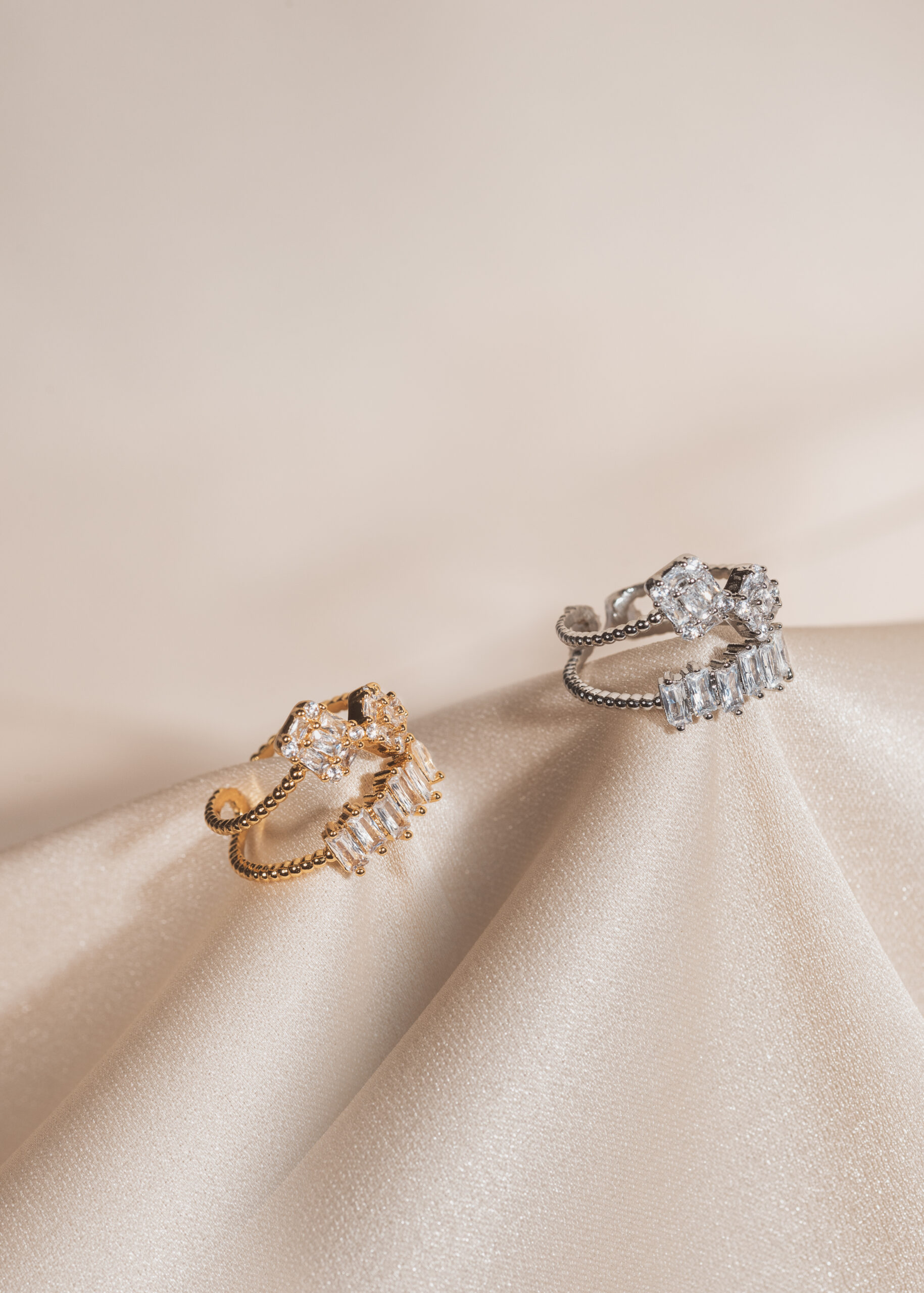 خاتم الطبيعة زركون بتصميم ابداعي بلونين الفضي والذهبي.