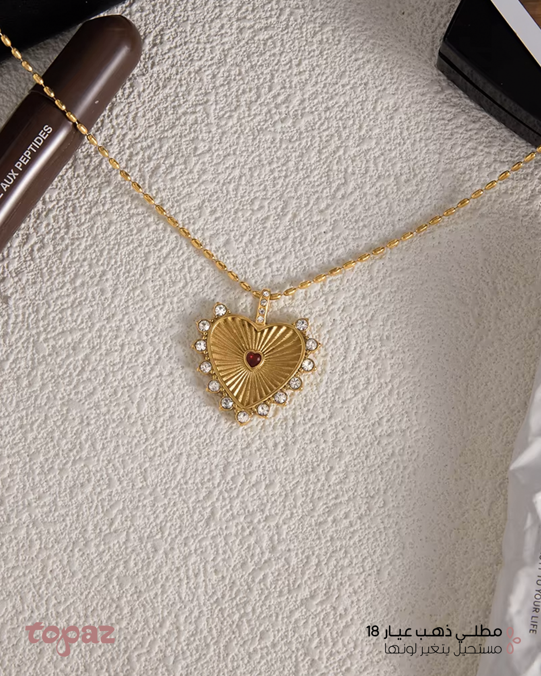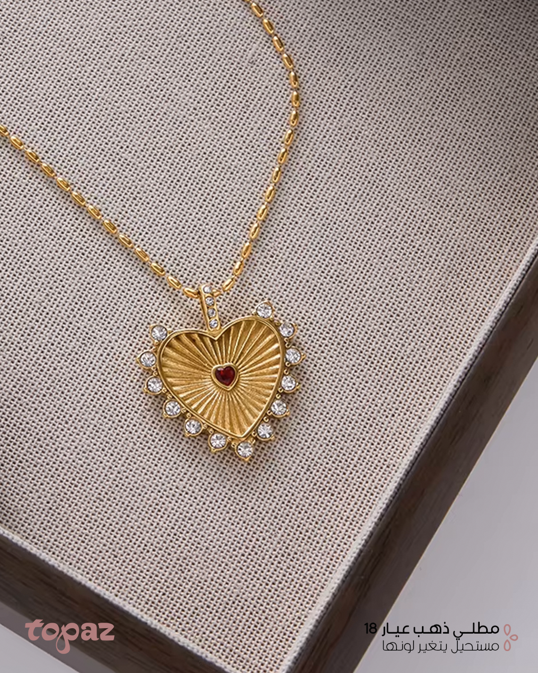 Topaz Luxury Oman 18K Gold Plated Red Hearts Necklace waterproof اكسسوارات مطلية ذهب عيار ١٨ مجوهرات توباز