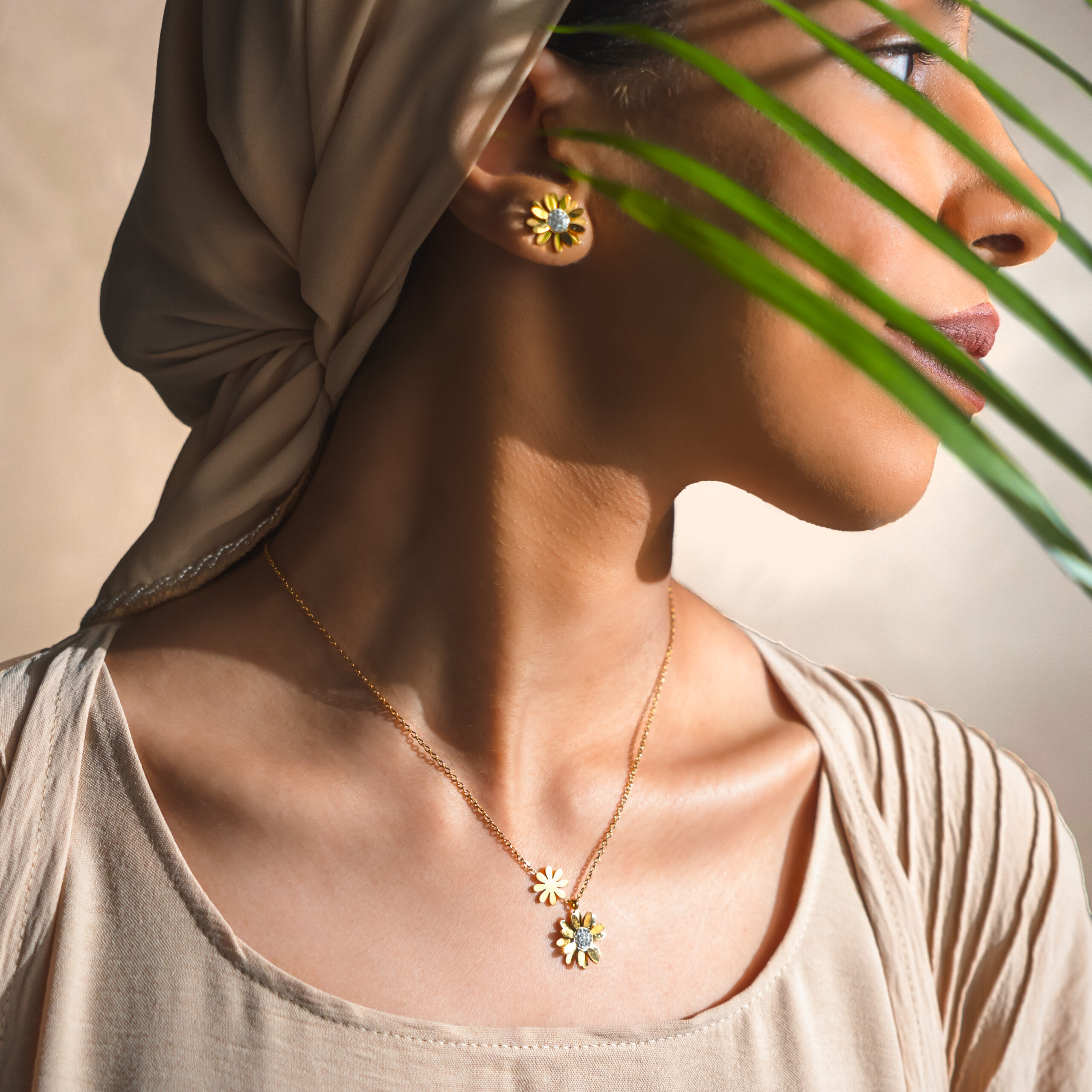 Flowers Set 18K Gold Plated Water prove Fashion Design Necklace Women Jewelry Pendant Gift