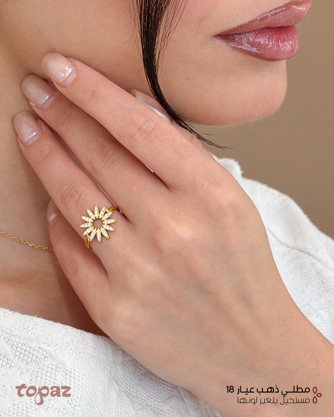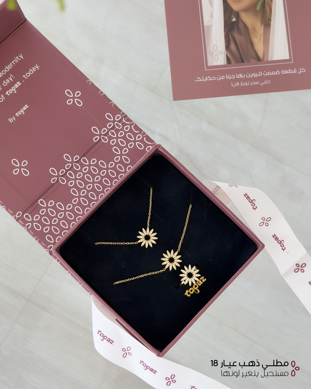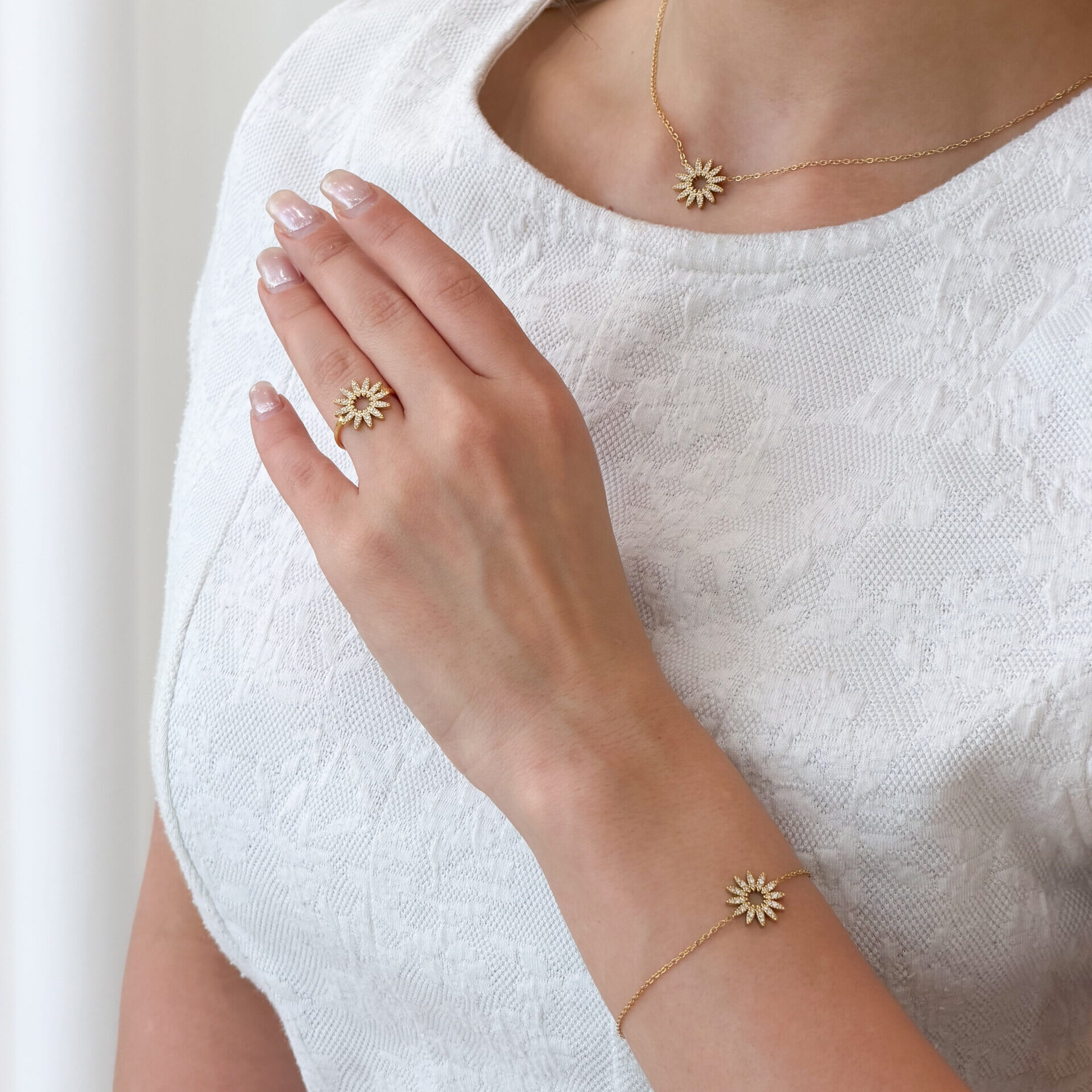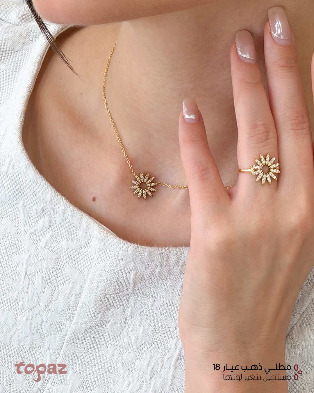 Topaz Oman Sunflower 18K Gold Plated Necklace Bracelet Ring Set Waterproof